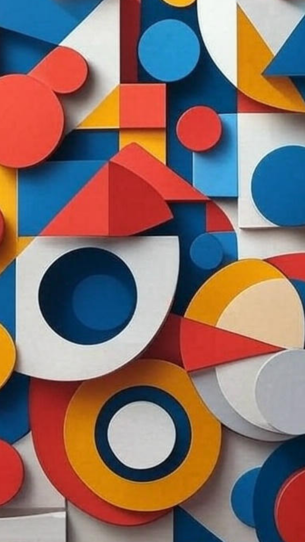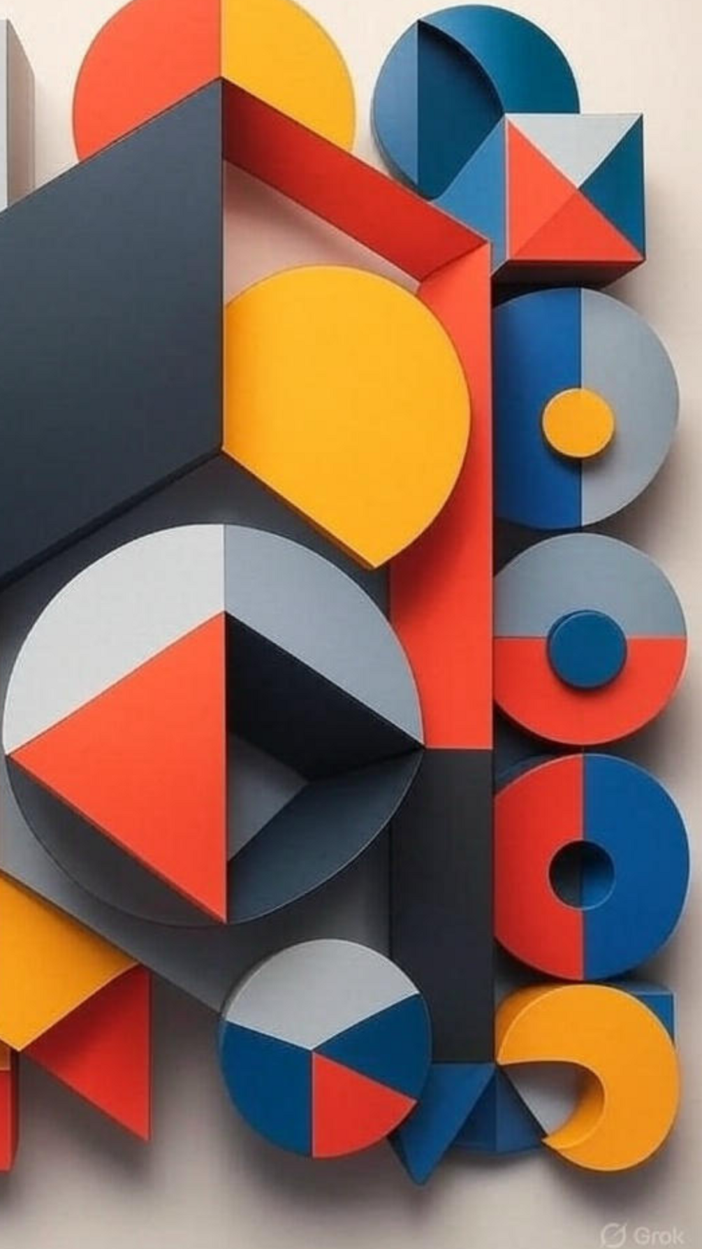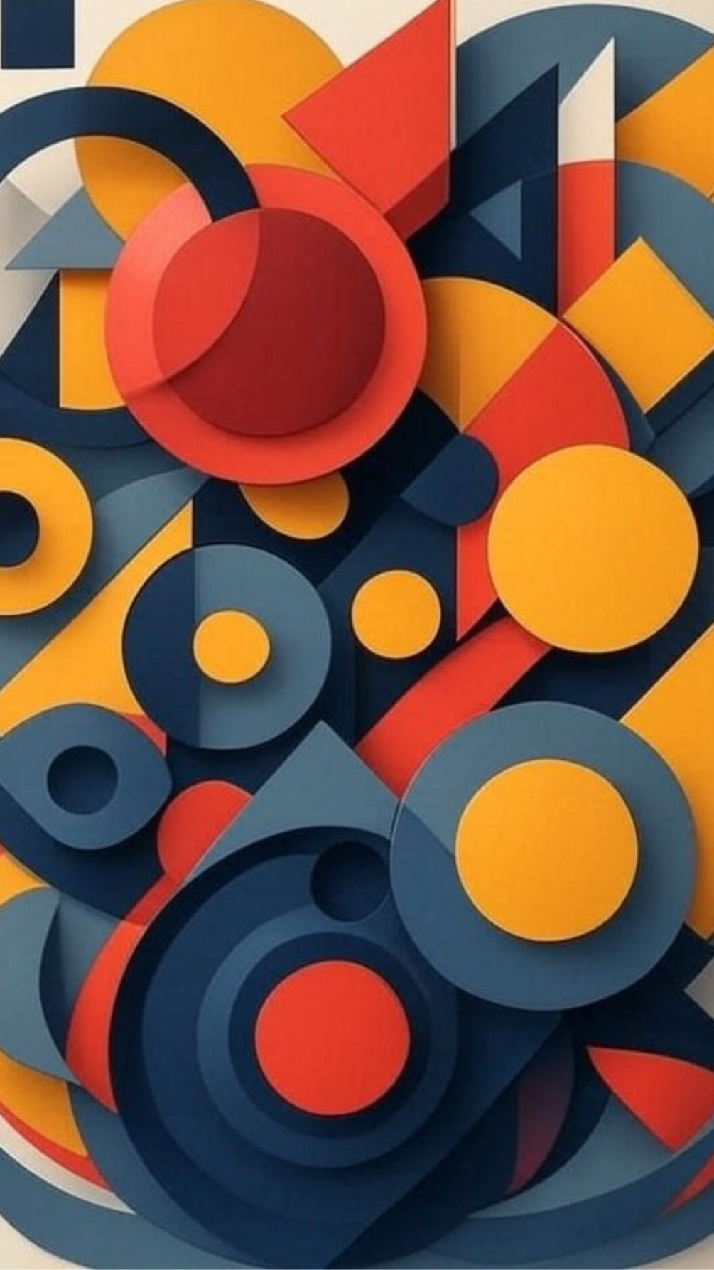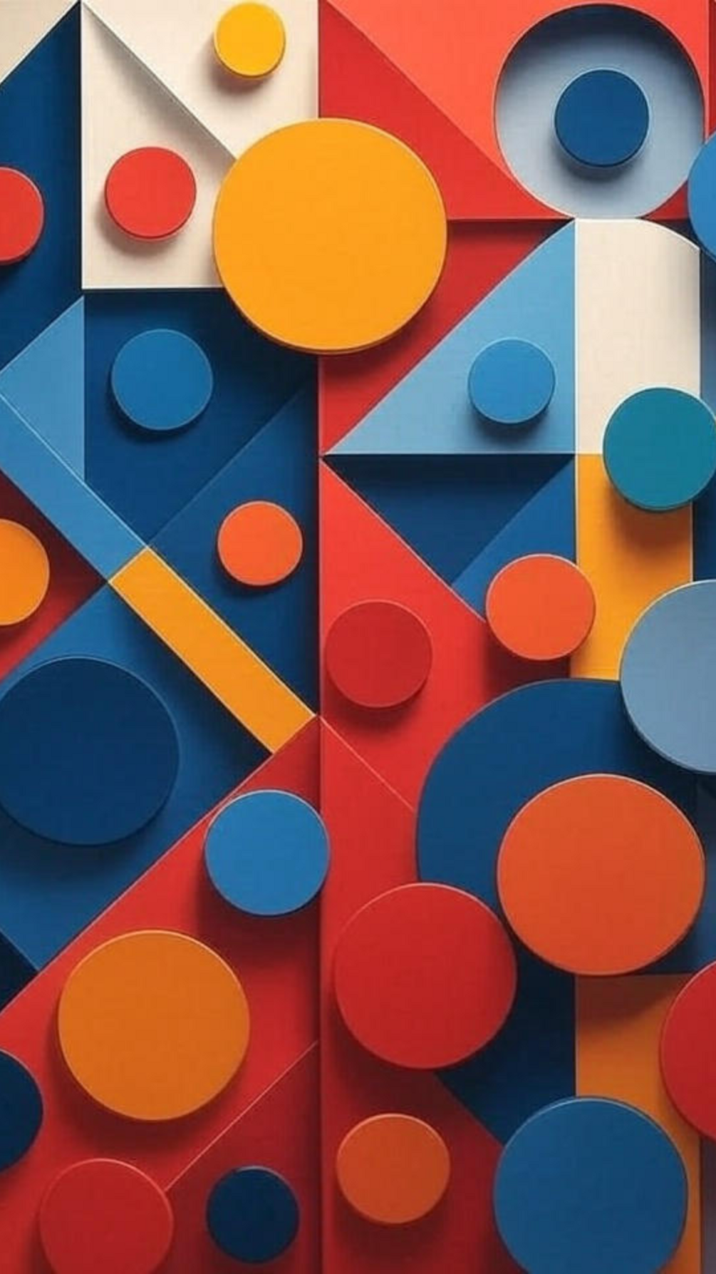This AI-generated image series showcases a bold fusion of geometry and color, where circles, triangles, and squares collide in perfect visual harmony. With a vibrant palette of red, yellow, blue, and orange, each piece pops with a playful yet modern aesthetic—ideal for digital branding, app icons, or design inspiration. The crisp 3D layering and clean symmetry make these visuals both striking and sophisticated.